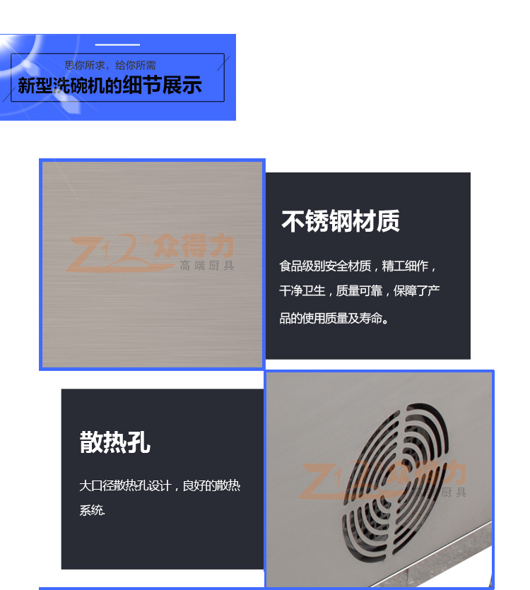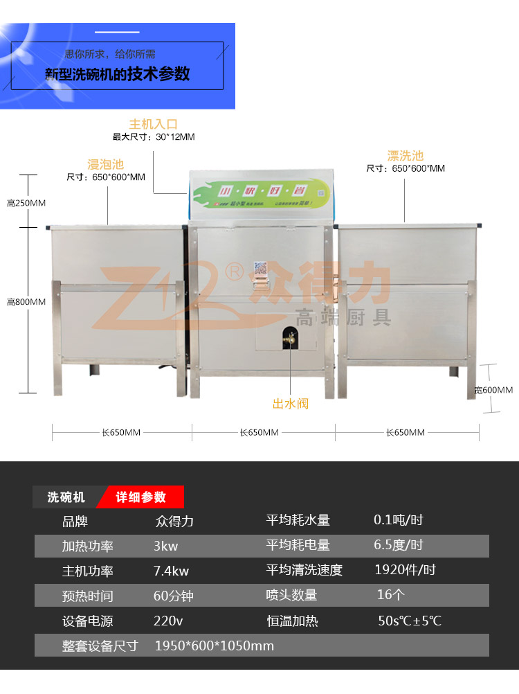 眾得力廚具為廣大星級酒店,主題餐廳飯店提供小型快速洗碗機設備,通道式不站地方洗碗機,高效提升洗碗效率,配合消毒機設備給廚房一個干凈,衛生、溫馨的環境。