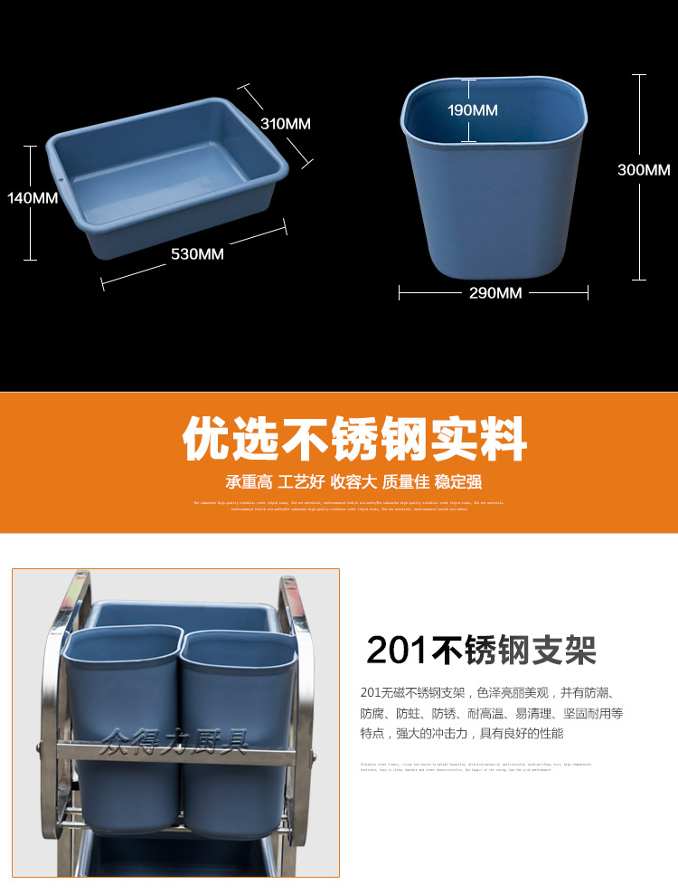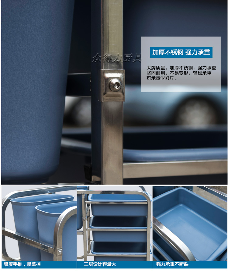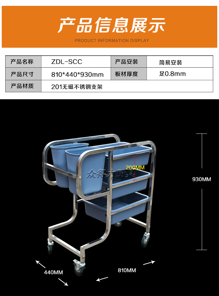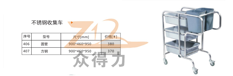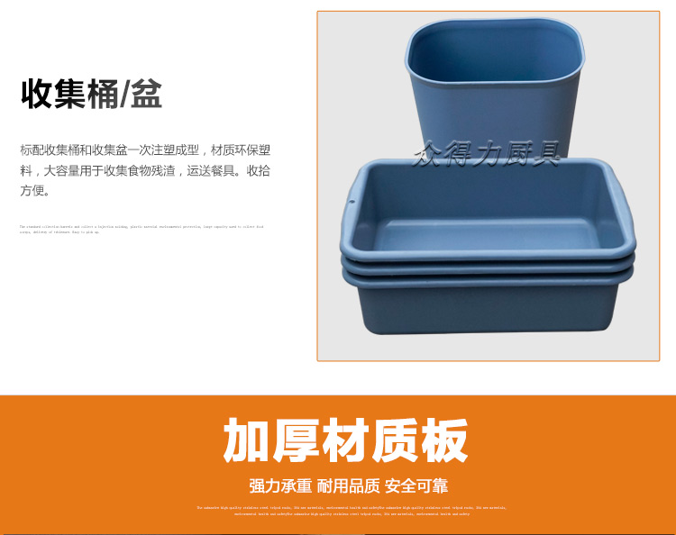 江西眾得力廚具有限公司生產(chǎn)銷售商用廚具,白鋼調(diào)理系列設(shè)備及食品機(jī)械,提供中央廚房工程項目整體解決方案。不銹鋼收集車有方管和圓管之分,組裝式,拆卸清洗方便,采用標(biāo)配足0.8mm201無磁不銹鋼加工設(shè)計。外形美觀,設(shè)計精量,符合餐飲食品衛(wèi)生需求。