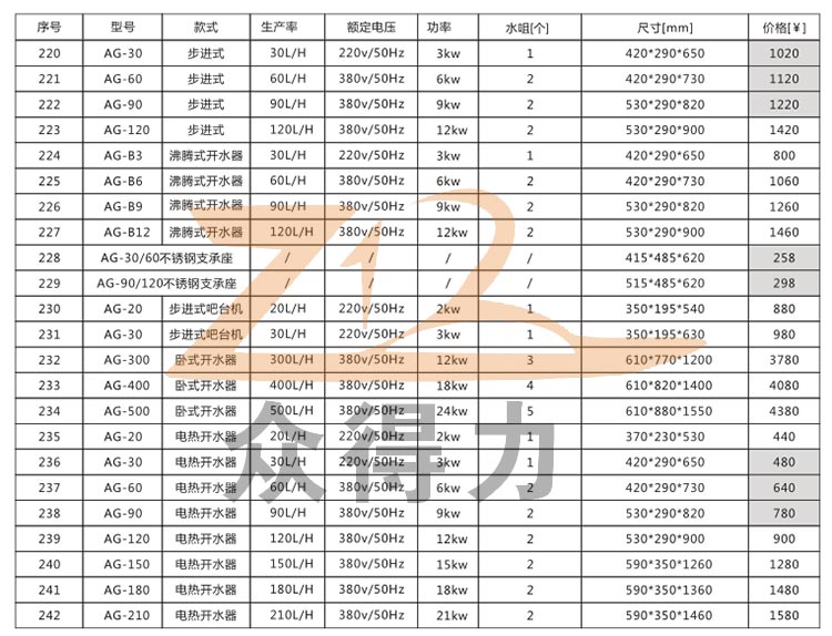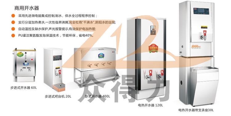 眾得力廚具一站式采購(gòu)平臺(tái)為您提供嘉盛系列各式步進(jìn)式開(kāi)水器,商用開(kāi)水器,柜式開(kāi)水器,電熱開(kāi)水器,適合廚房酒店、餐飲、高檔休閑場(chǎng)所、學(xué)校、醫(yī)院等企事業(yè)單位,企業(yè)使用,產(chǎn)品符合食品衛(wèi)生需求